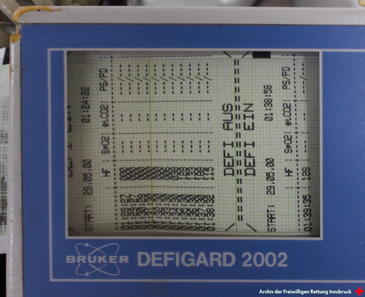 Version vom 9. Juni 2021, 06:42 Uhr von 9855 (Diskussion | Beiträge) (Bruker Defigard 2002: Ausdruck der Datentabelle. – ''Archiv der Freiwilligen Rettung Innsbruck'')