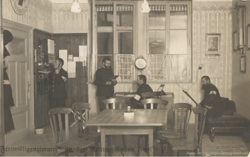 Im Adressbuch der Landeshauptstadt Innsbruck für das Jahr 1910 mit Stand 1.12.1909 wird zur Anforderung der Rettungsabteilung der Freiwilligen Feuerwehr Innsbruck für Unglücksfälle und Krankentransporte mit der Nummer 300 erstmals nicht die Telefonnummer der Feuerwehr, sondern eine eigene Telefonnummer der Rettungsabteilung genannt. Im Jahre 1909 war die Rettungsabteilung, damals noch im zweiten Hof des Neuen Rathauses untergebracht, im Zuge einer Neugestaltung ihrer Räumlichkeiten auch mit einem Telefonanschluss mit zehn Nebenstellen ausgestattet worden. Im Jahresbericht für 1909 heißt es: